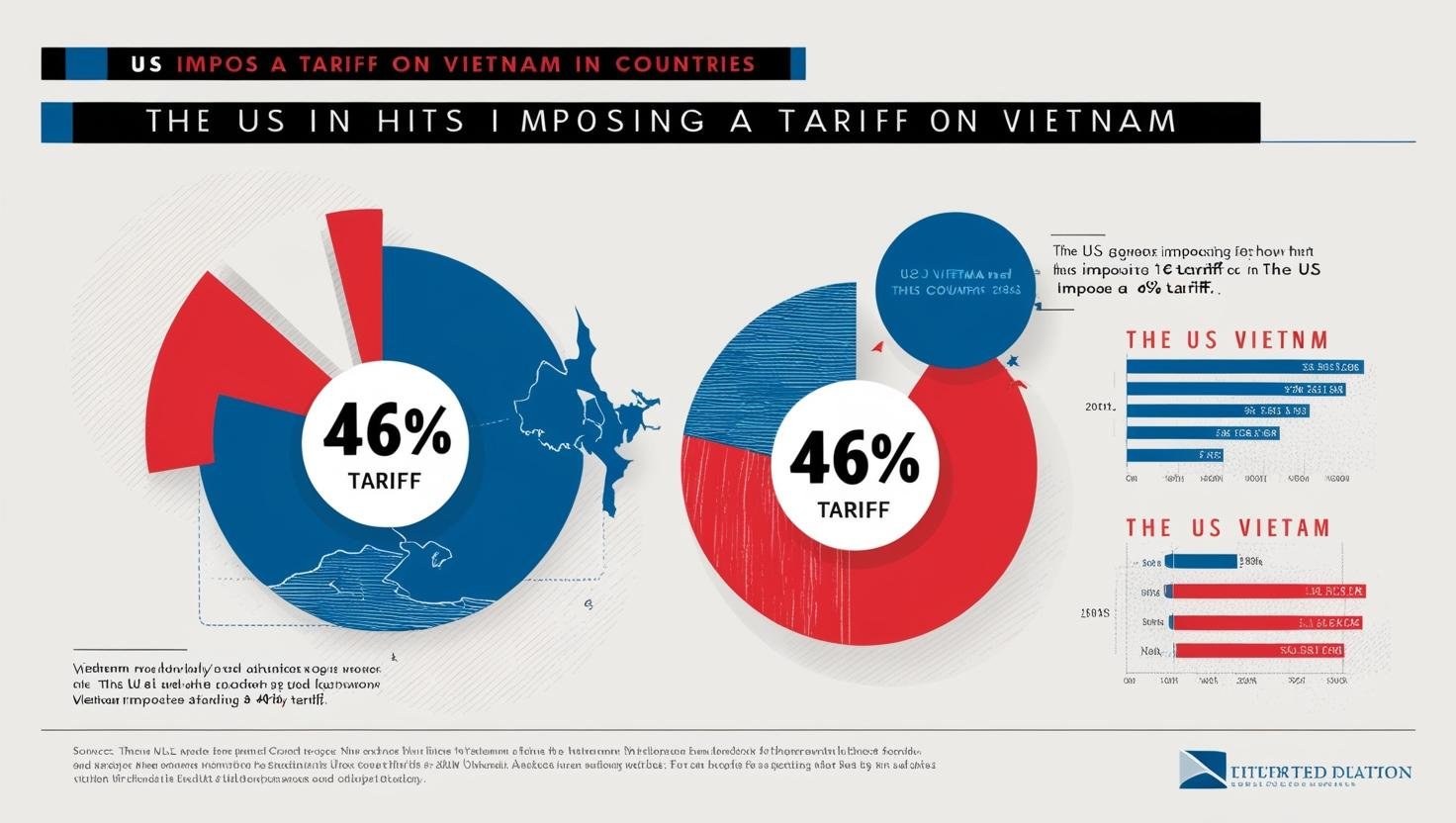 - 다른 국가와의 비교: 베트남에 부과된 46%의 관세율은 미국과 무역 불균형이 큰 다른 국가들과 비교했을 때 매우 높은 수준입니다. 예를 들어 중국은 34%, 일본은 24%, 한국은 25%, EU는 20%, 캐나다와 멕시코는 USMCA 협정에 따라 15%, 인도는 과거 보호무역 정책으로 인해 18%의 관세율이 적용됩니다. 캄보디아(49%), 라오스(48%), 마다가스카르(47%)만이 베트남보다 높은 관세율을 부과받았습니다.